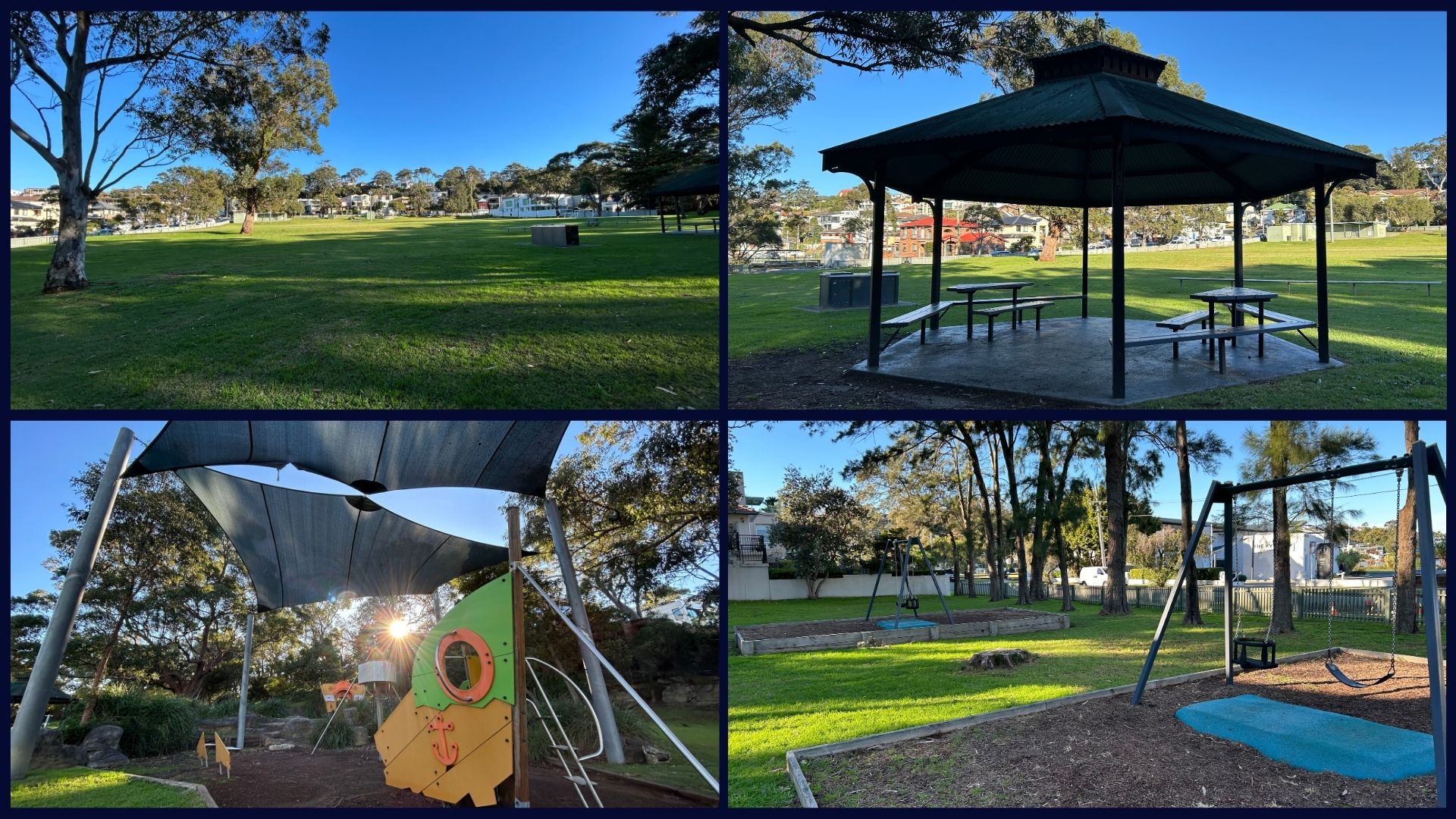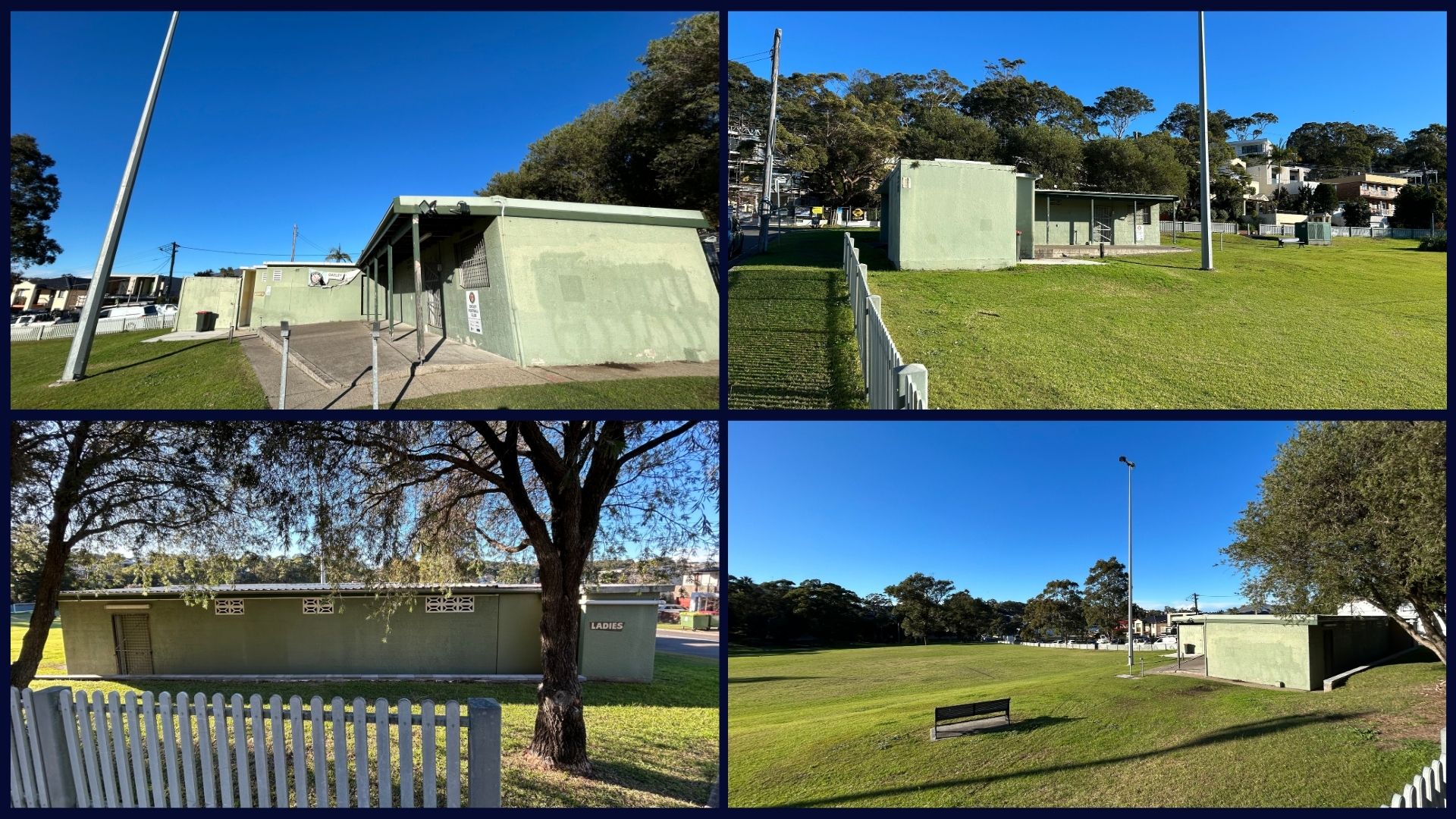 The Green Reserve in Kyle Bay is a popular local park used for sports and recreation. It has several playing fields, a playground, and picnic and BBQ areas for families and visitors to enjoy. The current building on site has public toilets, storage space, and a canteen for sports events.
